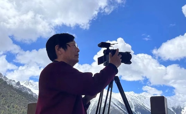 图说:焦波在西藏拍摄途中。图源:山东广电微信公众号(下同)