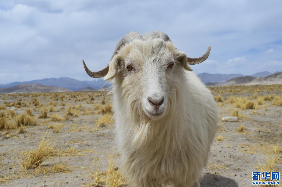 在日土县境内拍摄的白绒山羊(4月25日摄)。新华网 旦增努布 摄