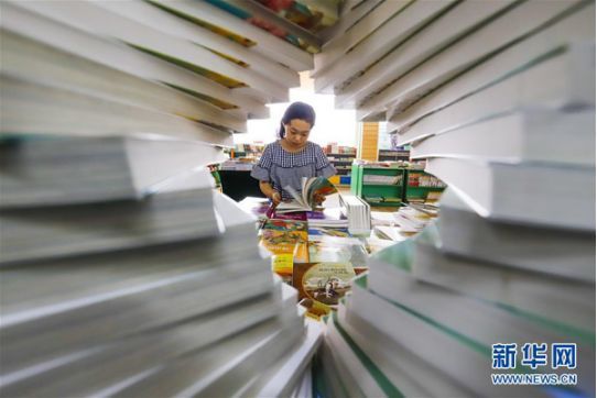 8月28日,学生在河北省遵化市新华书店营业厅选购图书。(新华社发 刘满仓 摄)