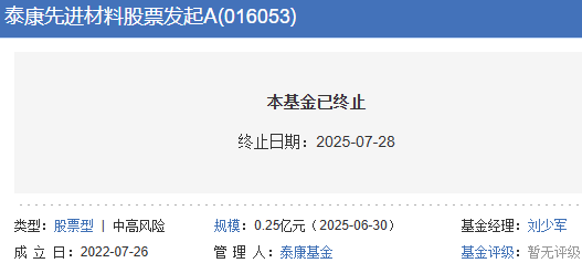值得注意的是,在泰康先进材料股票发起式基金清盘后,刘少军又继续担任泰康资源精选股票发起式的基金经理,目前该基金正在发行中,还尚未正式成立。
