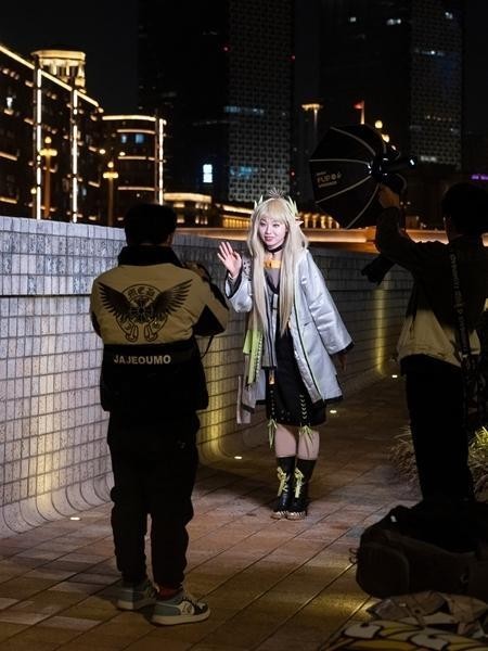 2024年3月3日,上海,一位女孩在苏州河畔做直播。