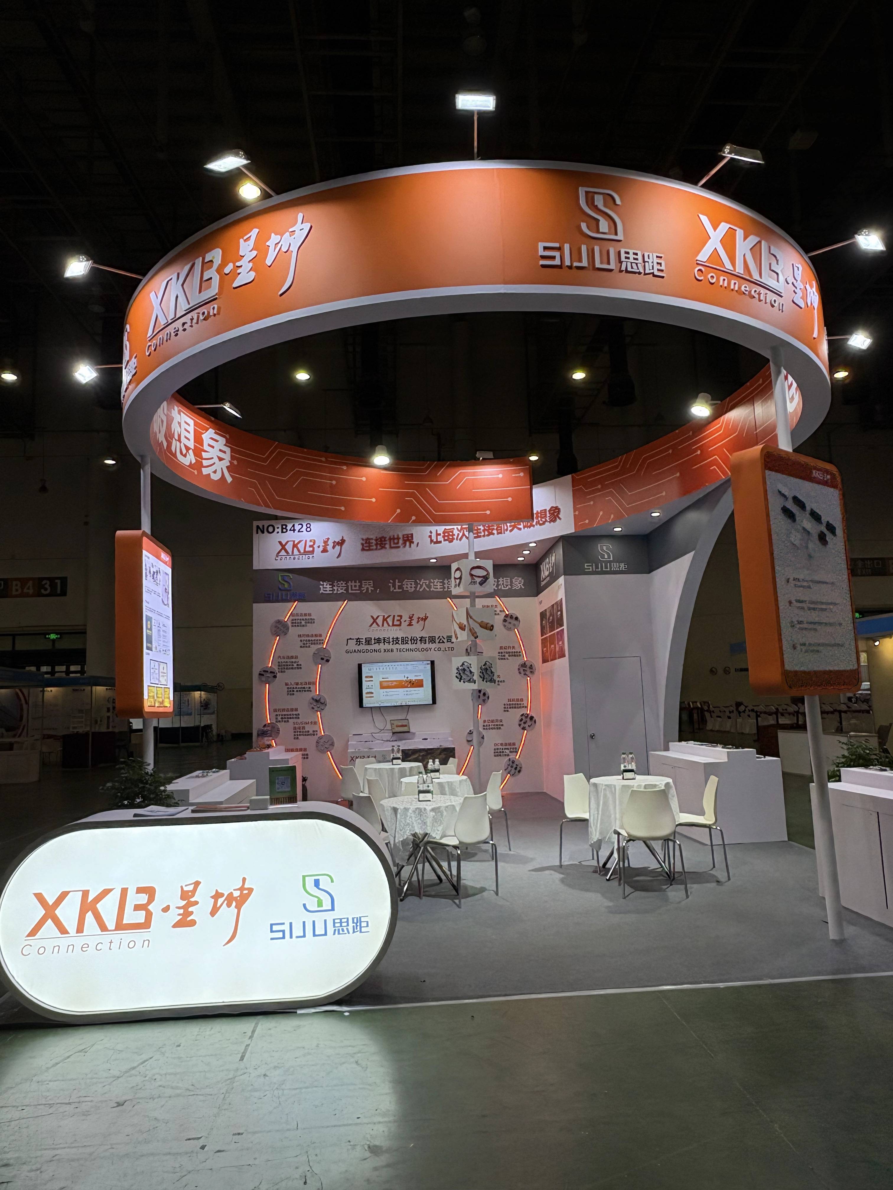 走进B428展位,星坤的标志性橙色与白色设计在众多展台中格外醒目。作为星坤在福建地区的官方授权代理商,厦门思距公司协同参展,为本地客户搭建了更便捷的沟通桥梁。展台设计体现了星坤一贯的专业风格:简洁明快的布局中,每一处细节都透露出对连接技术的深刻理解。