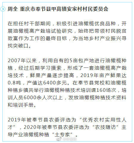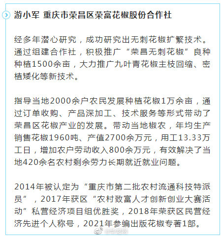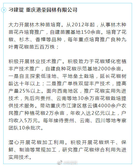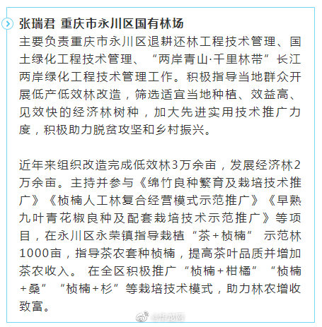 【厉害了!#重庆8人获得全国林草乡土专家称号# 】近日,国家林业和草原局公布了聘任第三批林草乡土专家名单,重庆8名来自林业系统基层一线的乡土技术人员榜上有名。林草乡土专家的认定与使用,助力了林草创新驱动发展和乡村振兴涉林工作创新推进。
