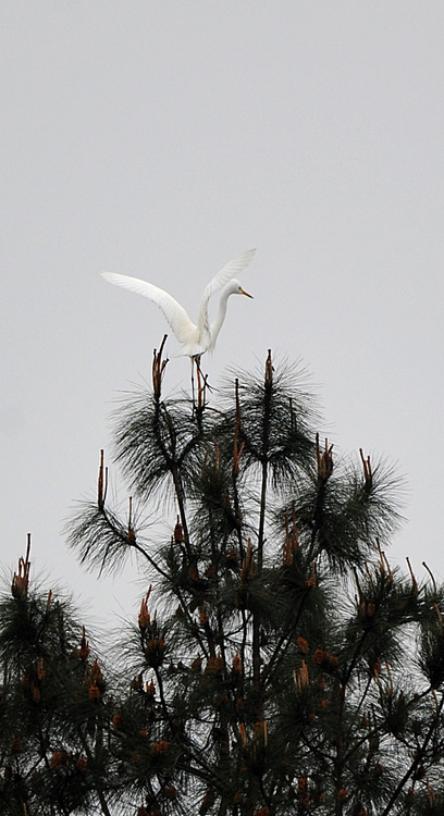 4月17日,一只白鹭在贵州省黔东南苗族侗族自治州丹寨县金泉街道乡间的树林上栖息。