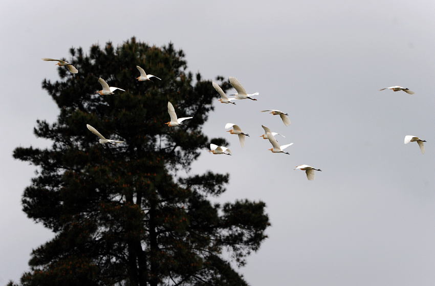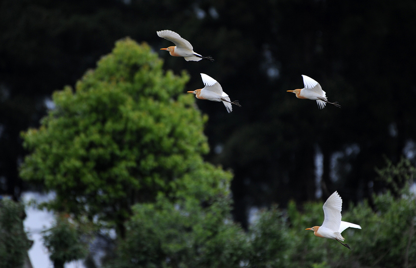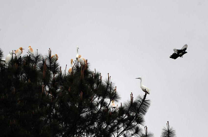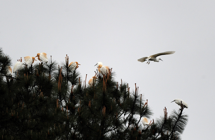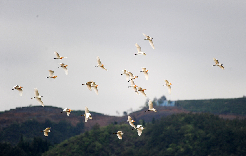 暮春时节,众多牛背鹭、白鹭陆续飞抵贵州省黔东南苗族侗族自治州丹寨县的乡村湿地,在这里繁衍栖息,给春日增添了勃勃生机,构成了一幅美丽和谐的生态画卷。(图/文 黄晓海)
