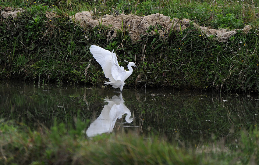 4月17日,一只白鹭在贵州省黔东南苗族侗族自治州丹寨县金泉街道乡间的湿地里看护幼鸟。