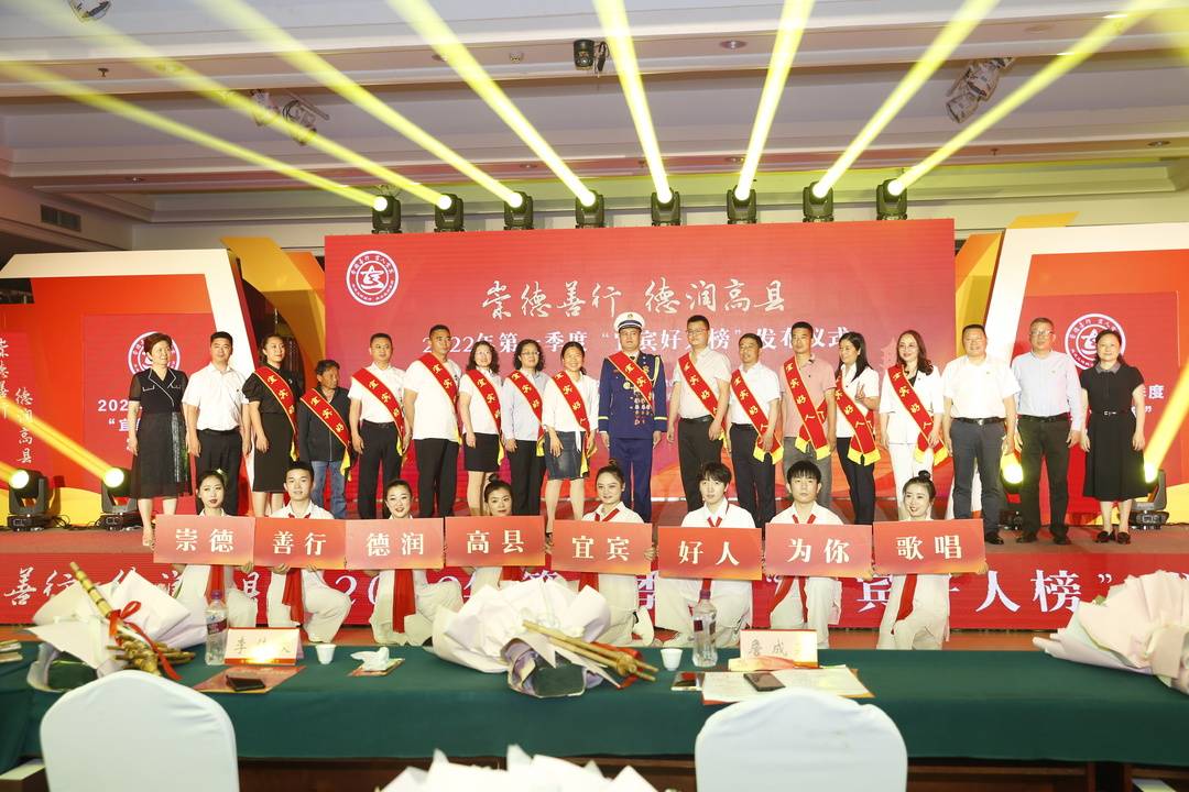 4月27日,2022年第一季度“宜宾好人榜”发布仪式在四川宜宾高县举行。此次发布的榜单分为助人为乐、见义勇为、诚实守信、敬业奉献、孝老爱亲五类,共15人上榜。现场通过播放事迹短片、文艺表演等形式,向观众展示了道德模范与身边好人的感人事迹和崇高精神。