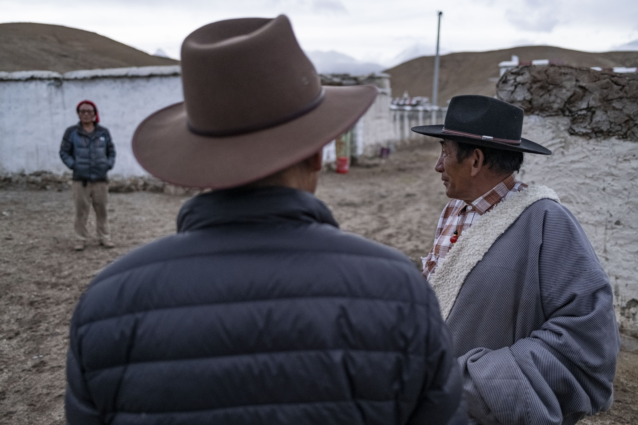 在西藏当雄县巴灵村,罗珠(右)在电影放映前跟村民交流,商量放映地点、用电等事宜(5月20日摄)。新华社记者 孙非 摄
