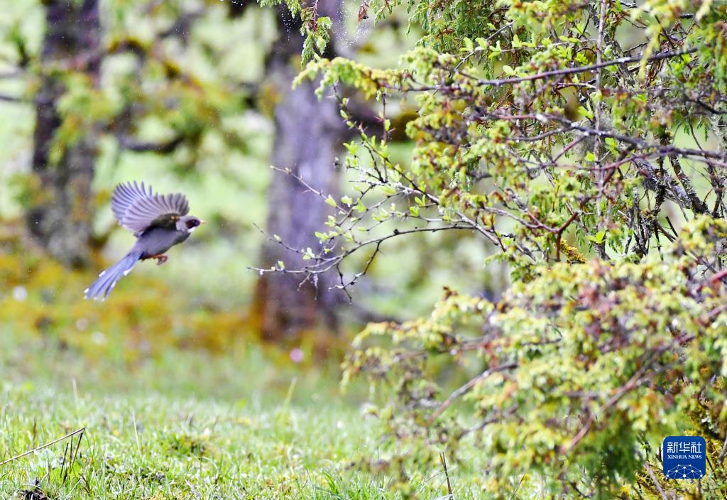 画眉鸟在草原湿地和原始森林间飞舞(5月31日摄)。新华社记者 张汝锋 摄