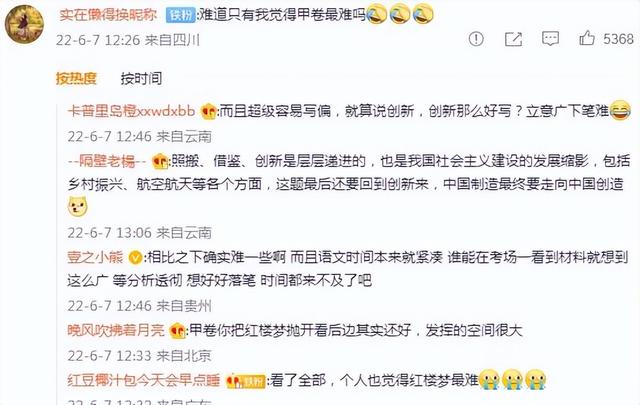 看了作文题后,众多网友纷纷感叹,真难!有网友感叹: 还没看完全国甲卷的作文题目到底是什么就已经睡着了,还有人说,曹雪芹来了都得复读吧!