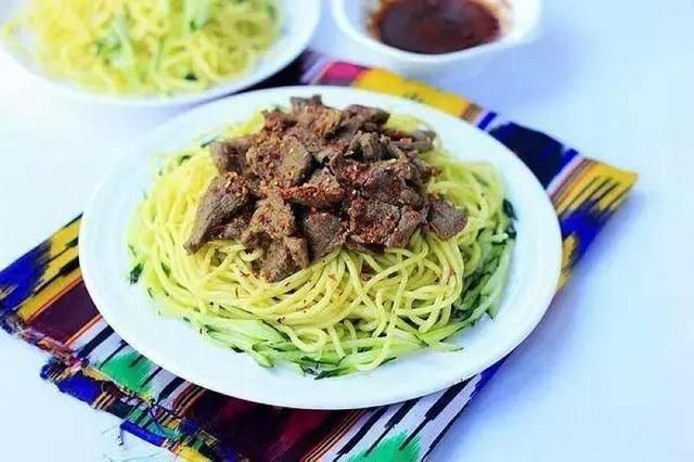新疆三凉(凉皮 凉面 凉粉),其实“三凉”最突出的一个特点,便捷,方便随吃随走,完完全全是一种快餐。在新疆,女人更喜欢凉粉和凉皮,就算吃黄面也会要求加入凉皮同吃,即所谓“对半”,也就是凉皮黄面各一半。再就是“三合一”而男人大多数则都是黄面党,新疆三凉汤汁多(能和牛肉面相比较),即使在冰天雪地,女人们也能旁若无人地蹲在大街摊子前吃三凉。正常情况下,吃三凉要搭配烤肉,才能出三凉的特点来。