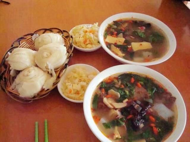 丸子汤在新疆可谓是家喻户晓,基本上家家户户都会做,在新疆很多地方都会见到这道菜,新疆人吃丸子汤必须要来点油塔子,就着吃和泡着吃可以自己选择。丸子汤里的食材也比较丰富,有牛肉片、冻豆腐、粉条、菠菜,蘑菇等。好似一锅丸子烩菜,也是新疆人喜爱的快餐之一。“丸子汤是油塔子的灵魂”!