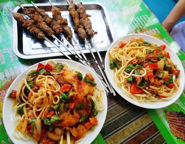 拌面确确实实是新疆人的快餐,上班族学生族一般都当做午餐吃,出门逛街了,来一盘拉条子,在来几串烤肉,那真是豪华午餐了。