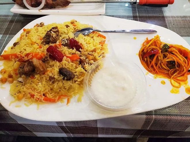 这是新疆人的快餐,耐饿好吃,又随吃随走,一份抓饭有肉有菜,甚至有的还有干果,咸甜适中,新疆人一般都是当做午餐吃,一盘抓饭下肚,好吃又耐饿。