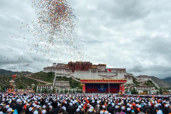 2021 年8 月19 日,庆祝西藏和平解放70 周年大会在拉萨布达拉宫广场举行。 本报记者 江飞波 摄