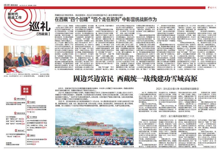 西藏自治区党委统战部介绍,2022年,全区统战系统以全力服务迎接党的二十大为主线,持续深化反分裂斗争,确保国家安全和长治久安。加大活佛转世政策法规宣传宣讲力度,牢牢掌握反分裂斗争全局主动性。在铸牢中华民族共同体意识上见行见效,有效抵御各种极端、分裂思想的渗透,坚决防范民族领域重大风险隐患。