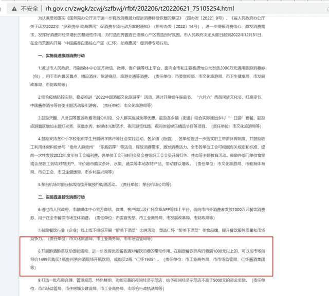 据每经网,近日,仁怀市人民政府官方网站发布了《“中国酱香白酒核心产区(仁怀)·助商惠民”促消费专项行动方案》(以下简称“《方案》”)。