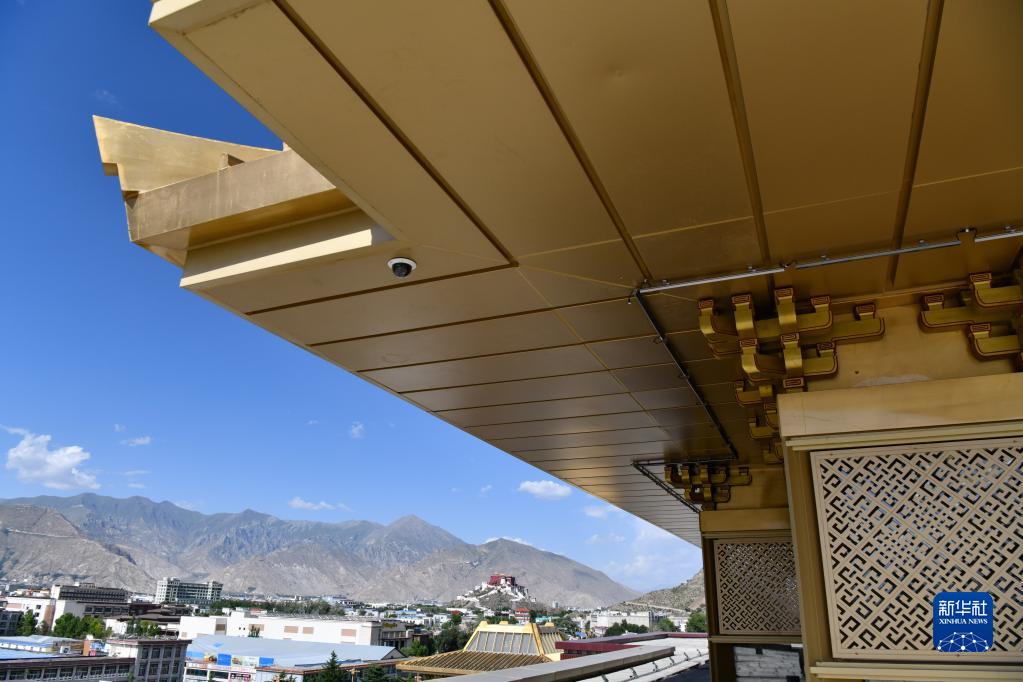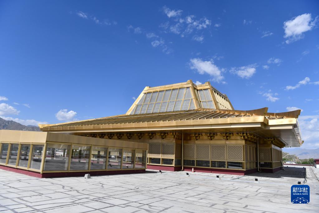 西藏博物馆藏式金顶使用了轻型的钢结构(7月6日摄)。