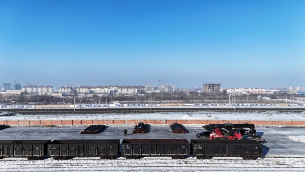 2月13日11时,两节载有120吨钢管的列车驶入乌苏市新丝路铁路专用线货场,这也是该条专用线第三批进站的货物。
