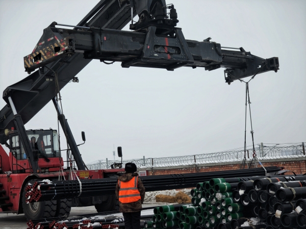 这批钢管从济南局济西站出发,将在乌苏市建设中发挥重要作用。抵站后通过自动化装卸设备快速完成转运,工作人员全程规范操作,专用线轨道与铁路部门衔接紧密,展现出“公铁联运”一体化运作的高效场景。